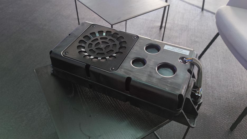 Powyższe zdjęcie pokazuje, jak takie urządzenie wygląda w przypadku Hyundaia Ioniqa 5 N. Jest to niewielka skrzyneczka, która waży ok. 2 kg i składa się generatora dźwięku oraz głośnika. Warto wiedzieć, że jest to coś innego niż generowanie dźwięków w kabinach samochodów elektrycznych. Tam wykorzystuje się do tego pokładowy zestaw audio, a dźwięk na ogół słychać przy wszystkich prędkościach i najczęściej w trybach sportowych, co ma akustycznie podkreślić auta.
