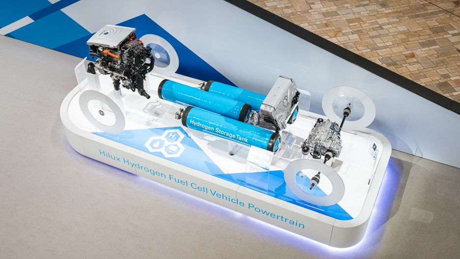 Ogniwa mają być też stosowane w lekkich samochodach dostawczych. W tym roku w Wielkiej Brytanii konsorcjum kilku firm pod przewodnictwem Toyoty opracowało prototyp wodorowego Hiluxa z wykorzystaniem komponentów układu napędowego Miraia. Trzy zbiorniki wodoru zdolne pomieścić łącznie 7,8 kg paliwa umieszczono w środkowej części ramy, pod kabiną i paką. Zestaw ogniw znalazł się pod maską, a akumulator buforowy zajmuje niestety ok. ¼ paki. Elektryczny silnik napędza na razie tylko tylną oś, ale docelowo, gdy Hilux w tej wersji trafi do sprzedaży, ma być dostępny napęd 4x4. Kiedy to nastąpi? Tego Toyota jeszcze nie zdradziła.